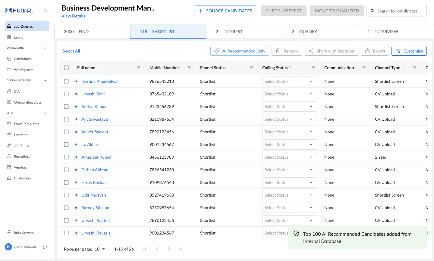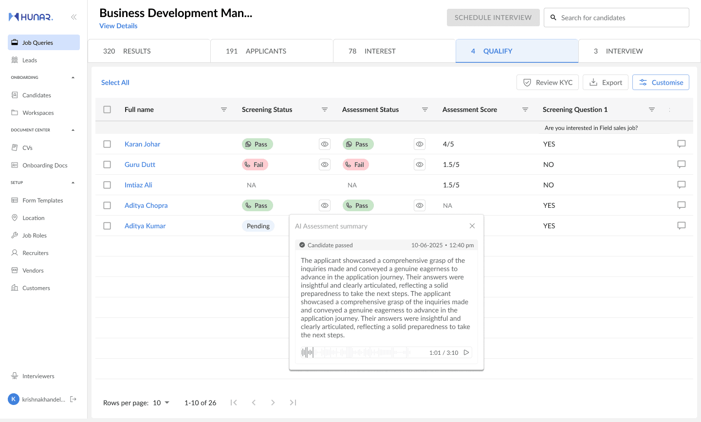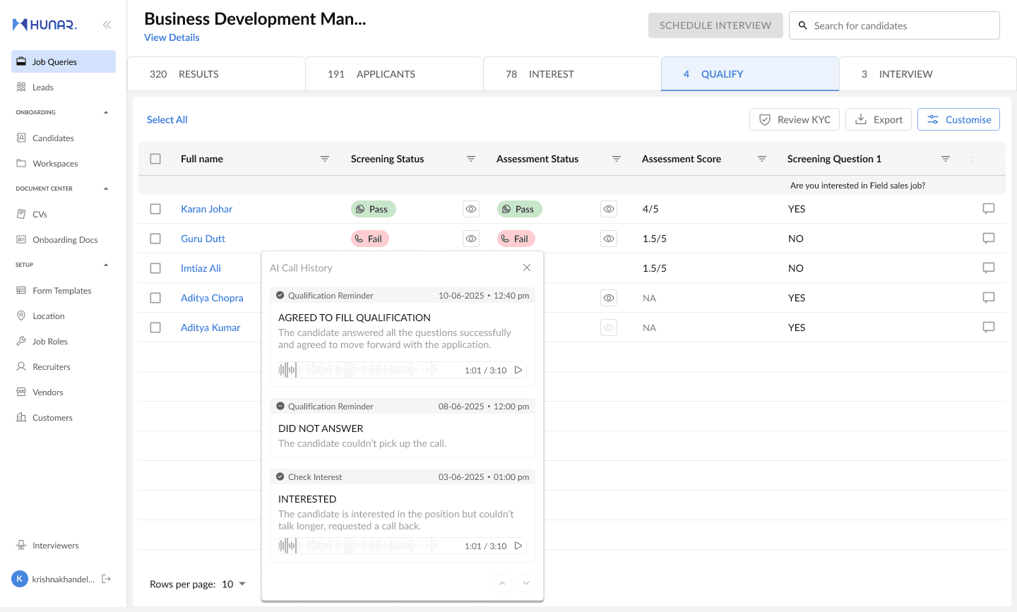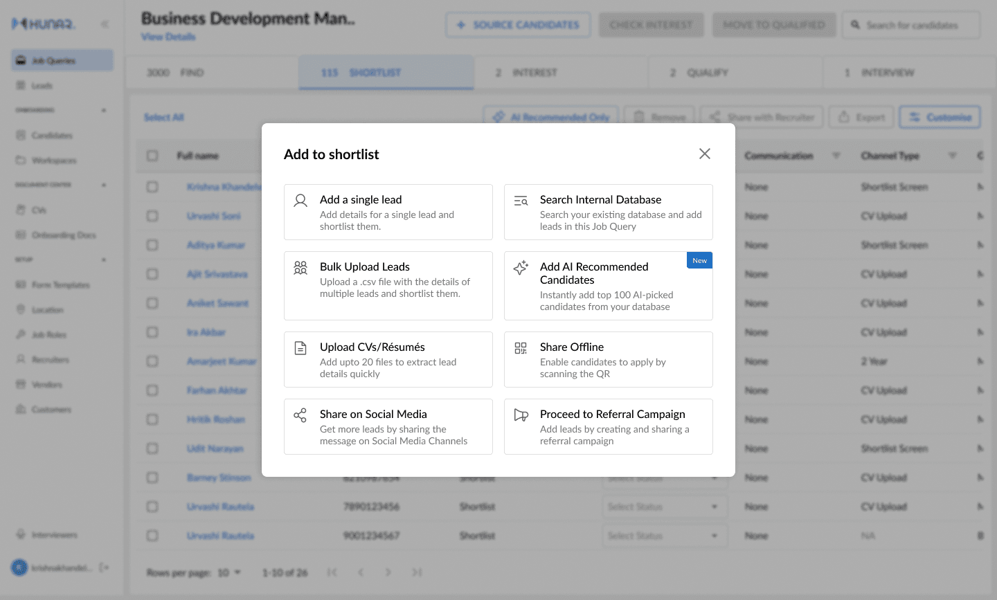 Hunar Connect is a complete workforce lifecycle management platform, containing robust features like sourcing, AI screening, AI assessments, interview scheduling, onboarding and more! It helps you manage your entire workforce without ever leaving platform with the help of smart workflows and advanced AI automations.