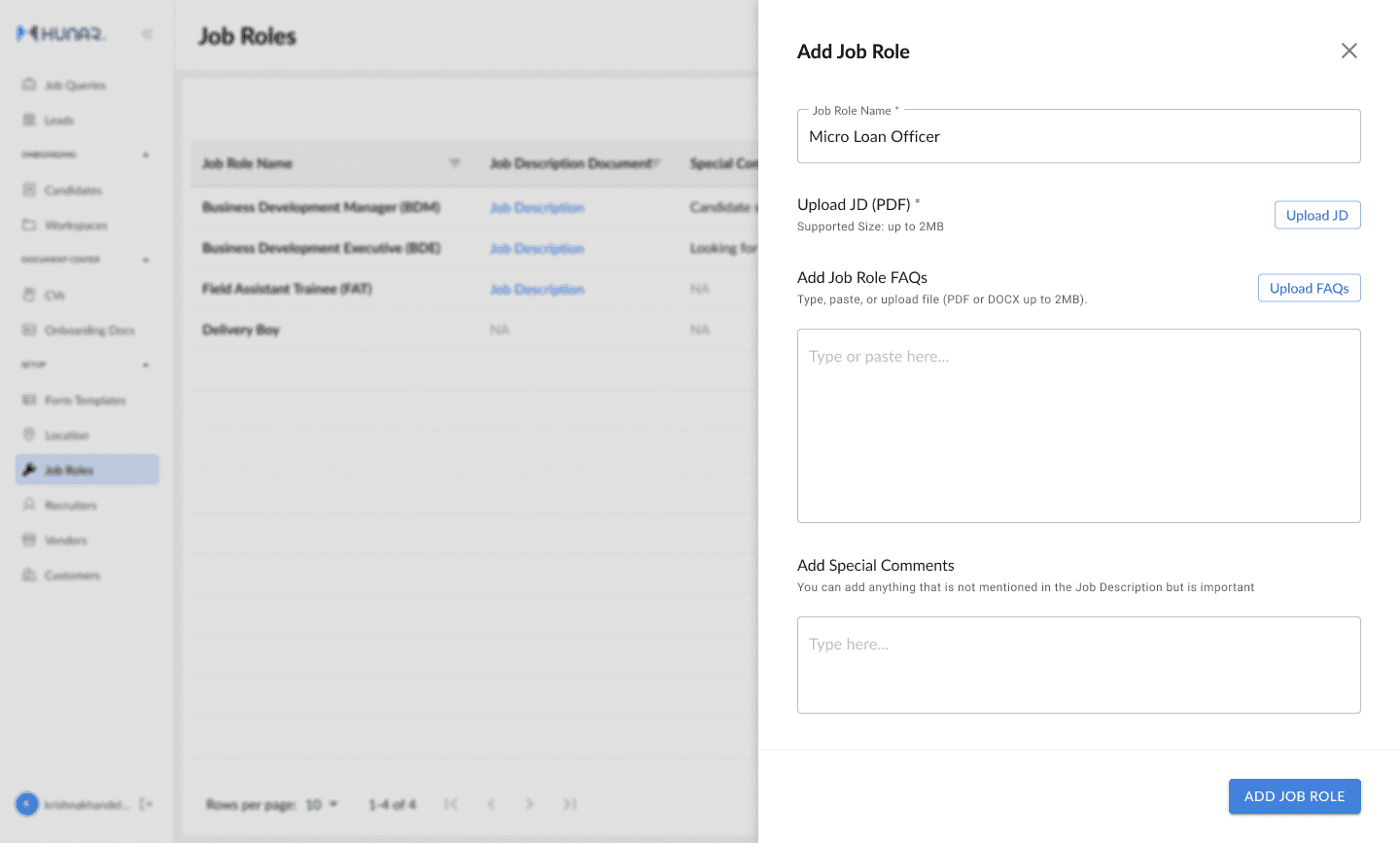 Ongoing design work for Hunar's CRM to help enterprises manage their entire frontline workforce. From hiring to onboarding, all without leaving the platform.